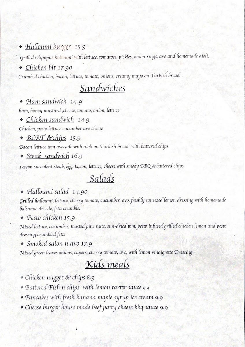 - Milkshakes & Thickshakes: Indulge in classic flavors like Chocolate, Banana, and Caramel, all priced at A$7.00.